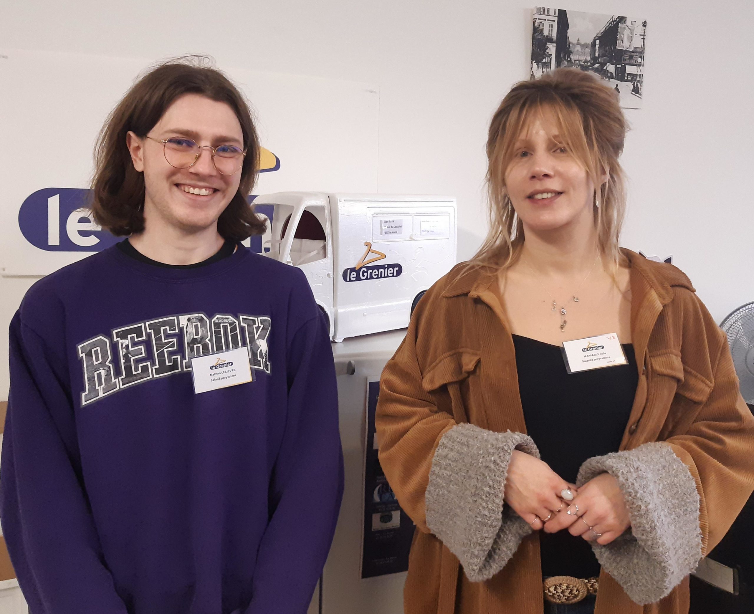 Le Grenier s’apparente à une ruche bruissante d’activité et fait son miel des dons matériels des particuliers et de boutiques textile qui se séparent de leurs invendus. Julie et Nathan témoignent de leur parcours.